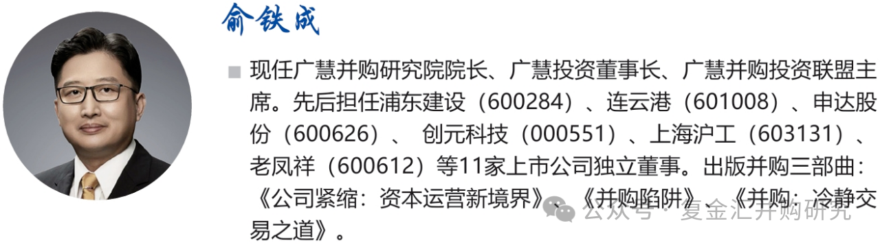 广慧并购研究院院长、广慧投资董事长、广慧并购投资联盟主席俞铁成作出主题为《“大并购时代”的机遇和挑战》的演讲。以下内容为演讲的核心观点整理: