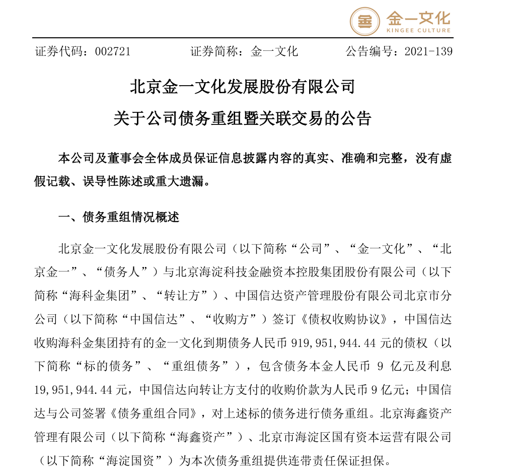 海淀区国资通过承债式收购的方式,解决了金一文化的债务问题,并获得公司控制权。