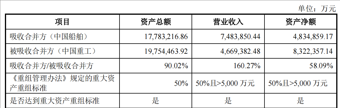 如果合并顺利完成,中国船舶将承继中国重工全部资产等,总资产将超过4000亿元,营业收入将逾1300亿元。成为全球最大造船上市公司。