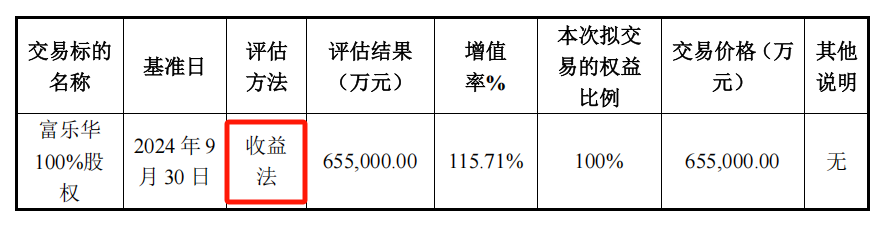 本次交易富乐华100%股权的最终交易价格确定为65.5亿元,这一价格基于对富乐华的资产状况、盈利能力、市场前景等多方面因素的综合评估。以动态PE来看,为18.87倍,在行业内处于合理区间。如此大规模的交易金额,对于市值相对较小的富乐德而言,无疑是一场“蛇吞象”式的挑战。