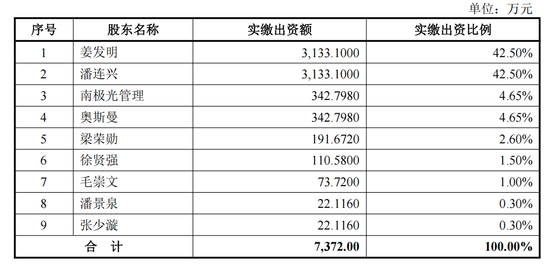 增资后南极光(300940)股权结构