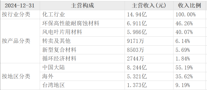 上纬新材:上纬新材(688585)是2020年在科创板上市的公司,主营业务涵盖环保高性能耐腐蚀材料、风电叶片用材料、新型复合材料以及循环经济材料等领域。