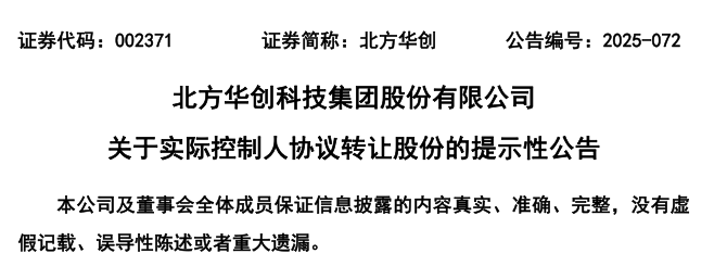12月15日,北方华创发布公告称,公司实际控制人北京电控与国新投资签署《股份转让协议》。