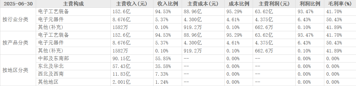 北方华创的存货额从2025年第一季度的252.11亿元增加至第二季度的311.39亿元,新增59.28亿元。