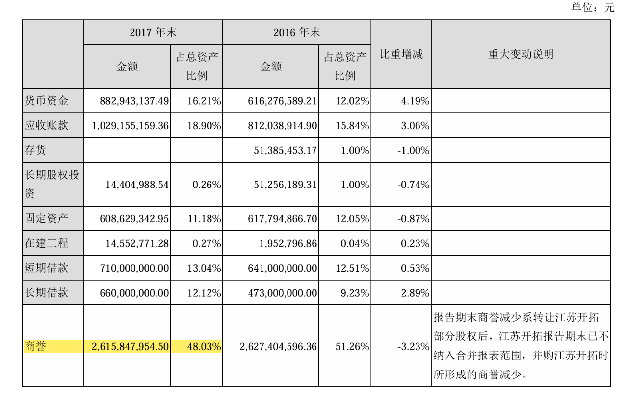 2017年年报显示润和软件商誉超26亿