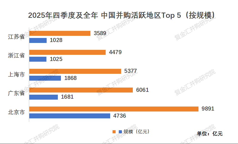 按并购金额统计,北京市以9891亿元位居榜首,广东,上海分别以6061,5377亿紧随其后。