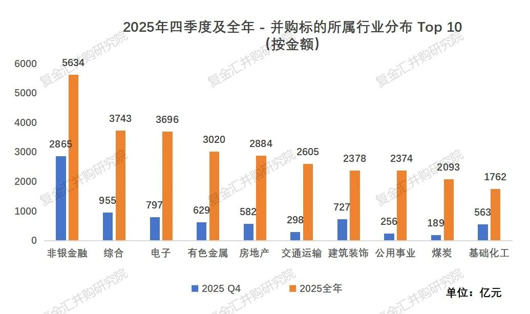 按交易金额,非银金融、综合和电子行业是并购交易的重点行业,分别是5634亿,3743亿和3696亿元。