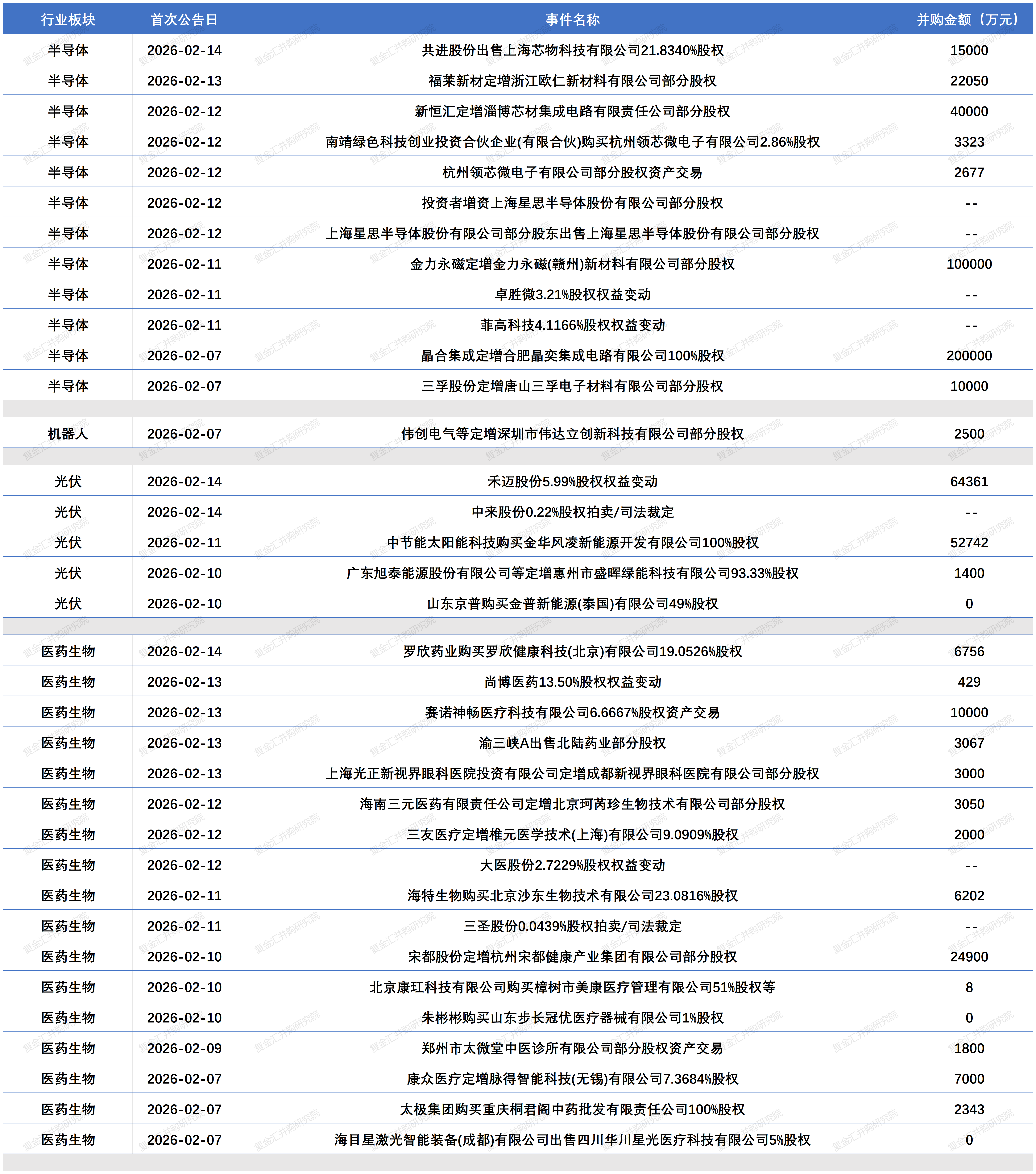 2026年2月7日至20日期间,中国并购市场在政策驱动下呈现活跃态势,产业链延伸与跨界转型成为主旋律。