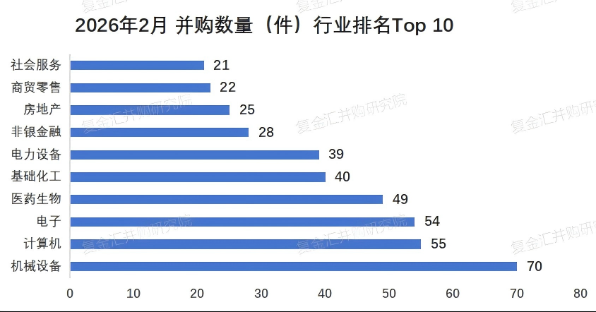 从2026 年2月的并购数据来看,行业间呈现出数量与金额不完全匹配的分化走势。
