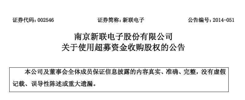 2014年10月27日,新联电子(复金汇并购班校友企业)第三届董事会第七次会议在公司会议室召开。董事长胡敏主持的这次会议,批准了一项看似平常却影响深远的决议:以10122.84万元收购江苏瑞特电子设备有限公司65.5178%的股权。