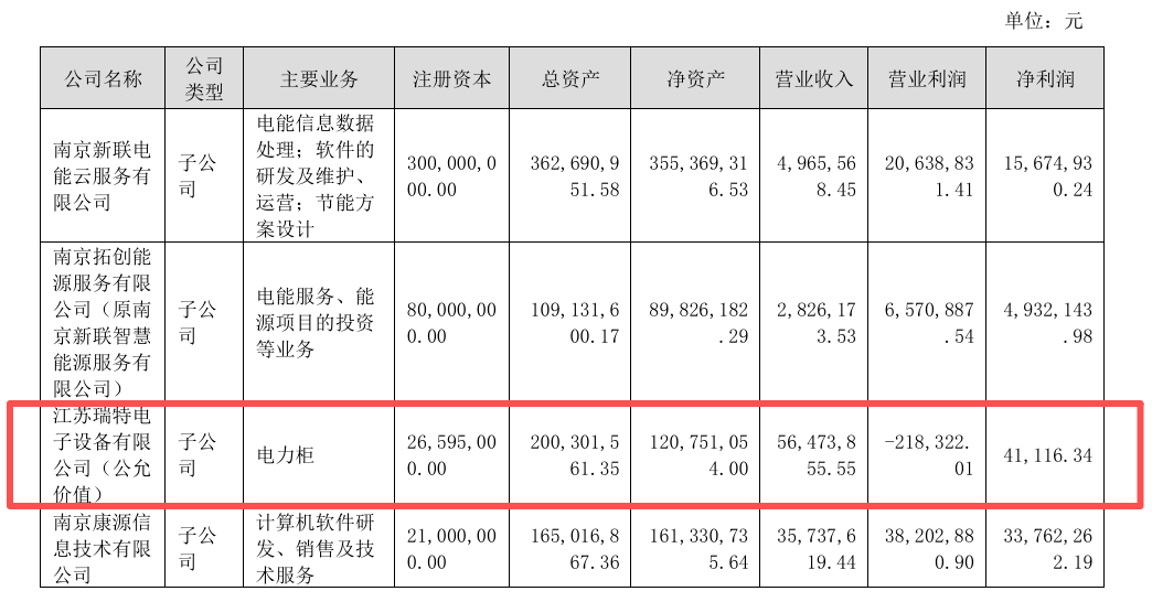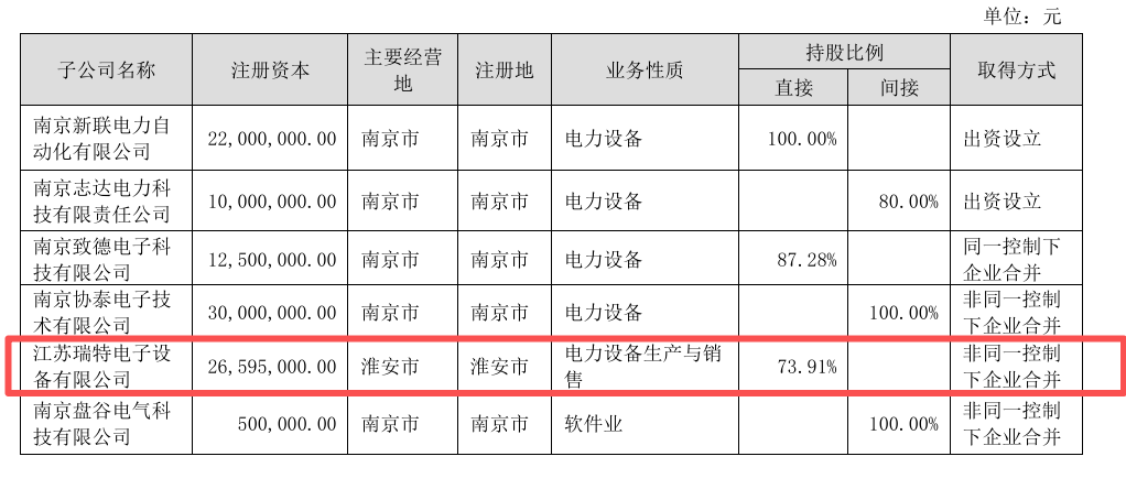 公司计划将现有从事低压成套设备的全资子公司南京新联能源技术有限责任公司并入瑞特电子。整合完成后,瑞特电子将被打造成为具有完整一次低压成套设备制造能力的设备制造商。