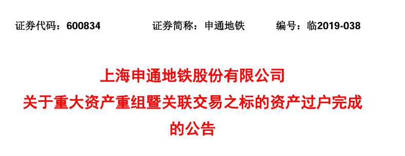 交易实施过程高效有序:2019年6月28日,一号线公司100%股权完成过户;同年9月20日,申凯公司51%股权完成过户。至2019年12月26日,公司宣布重大资产重组工作已全部完成。