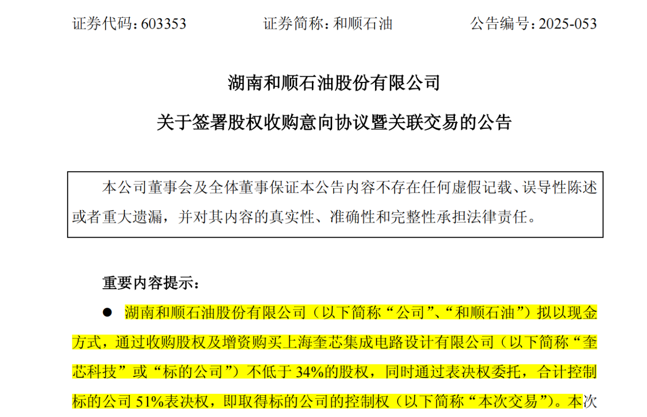 > 一家来自湖南的石油公司,竟斥资数亿元收购上海一家芯片设计公司控制权,这场跨界联姻背后隐藏着怎样的商业逻辑?