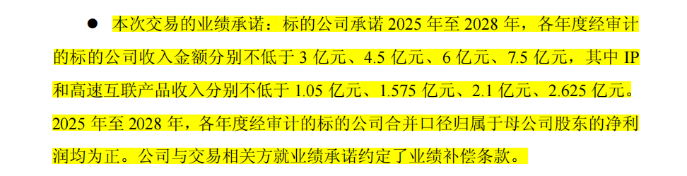 业绩承诺与补偿:交易设置了四年业绩承诺期,不仅包括收入指标,还专门规定了IP和高速互联产品的最低收入,以及净利润为正的要求。这种多维度业绩指标设计,更好地保障了上市公司利益。