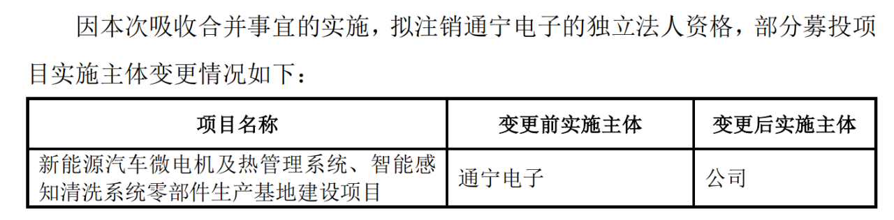 此次合并的重要配套措施是变更公司关键募投项目的实施主体。“新能源汽车微电机及热管理系统、智能感知清洗系统零部件生产基地建设项目”的实施主体由通宁电子变更为恒帅股份本身,确保了这一核心项目的直接管控和顺利推进。