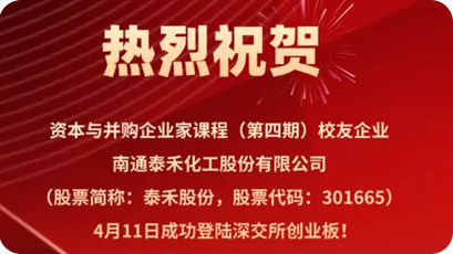 喜报 | 热烈祝贺并购4班校友企业:泰禾股份301665登陆创业板,上市首日高开338%!
