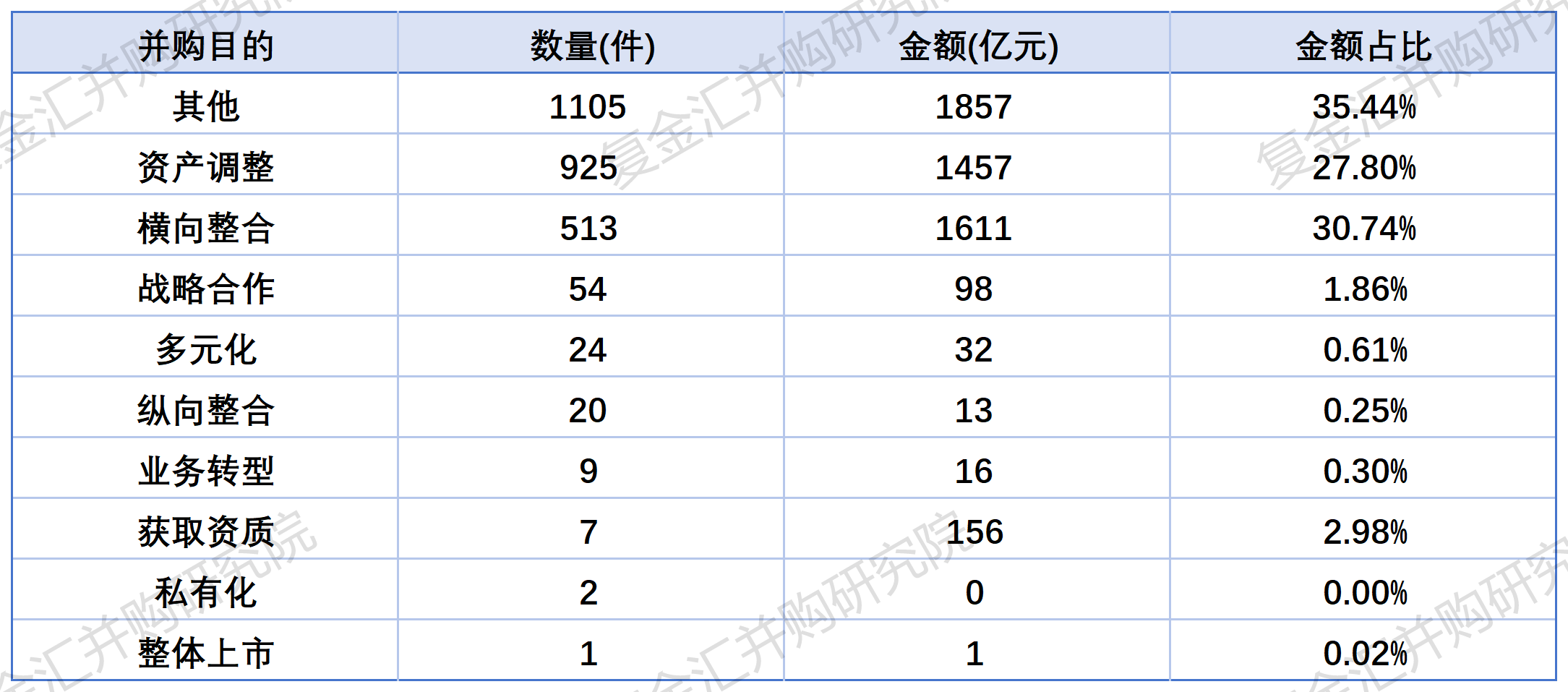 从2025年Q3单季度的并购目的分布看,资产调整类事件共925件,交易金额1457亿元,占总体的27.8%。横向整合类事件共513件,金额1611亿元,占比30.74%,高于资产调整的并购事件金额占比,可见企业通过并购同行、整合资源以强化市场地位的需求。
