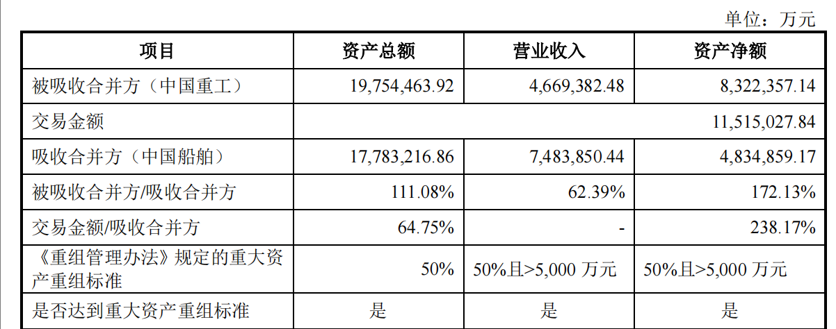 如果合并顺利完成,中国船舶将承继中国重工全部资产等,总资产将超过4000亿元,营业收入将逾1300亿元。成为全球最大造船上市公司。