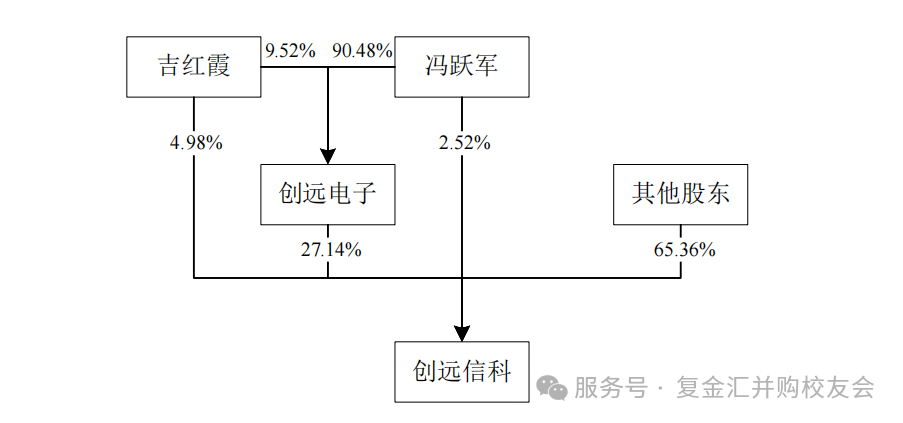 创远信科的实际控制人冯跃军及其配偶吉红霞合计持有公司34.64% 的股份。