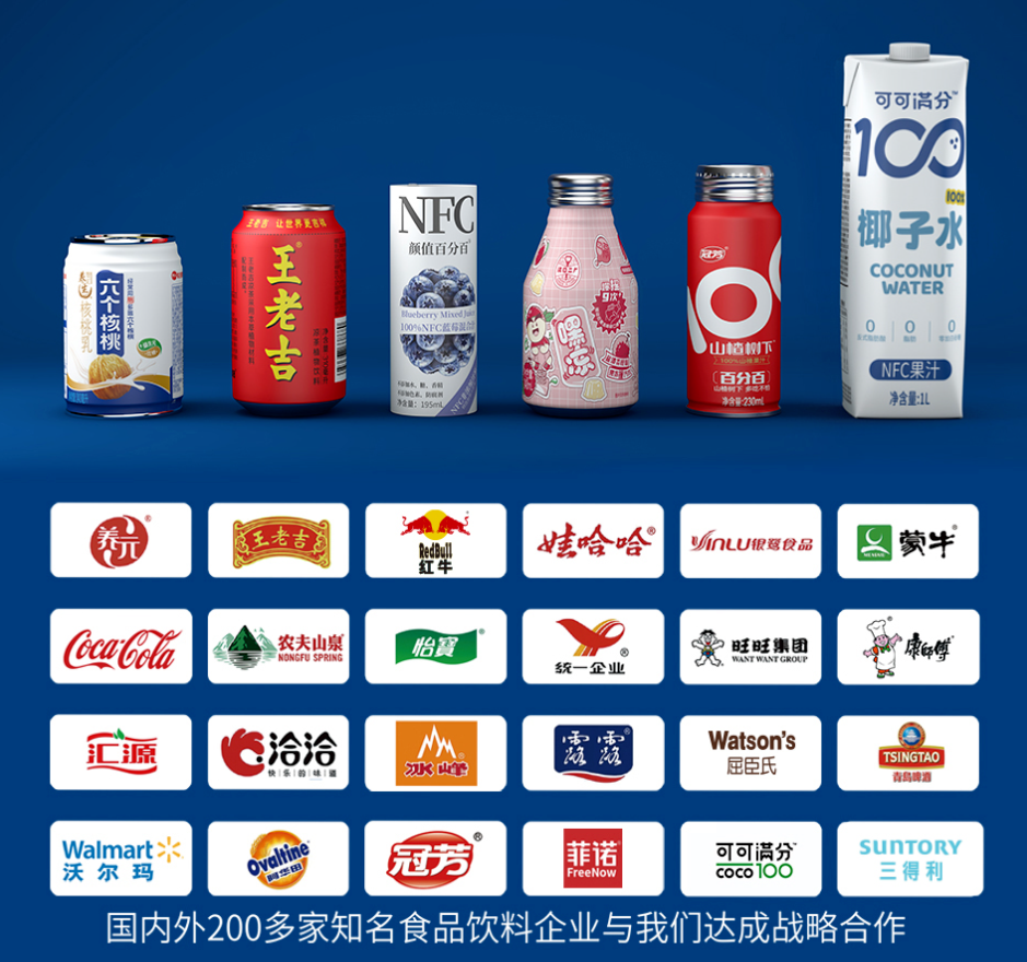 公司与国内多家著名食品及饮料品牌企业如养元饮品、王老吉、银鹭集团、达利集团、喜多多、承德露露等建立了稳定的合作关系。