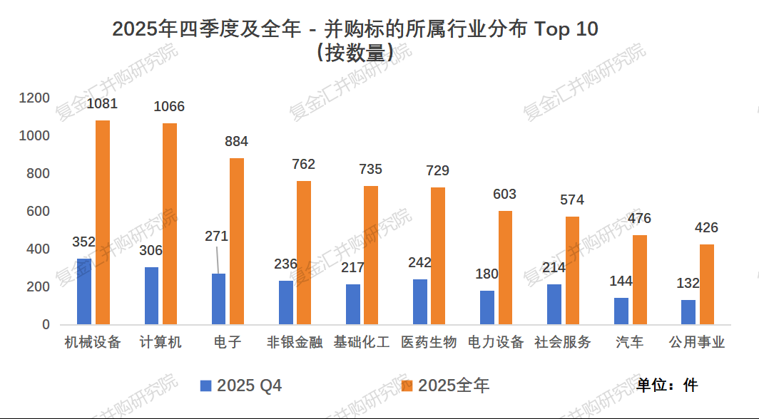 规模上延续了近年的稳健态势,结构上则锚定高端制造、科技、绿色转型等核心赛道,机械设备、计算机等行业的活跃并购,显露出企业从 “规模扩张” 转向 “生态协同” 的新逻辑。
