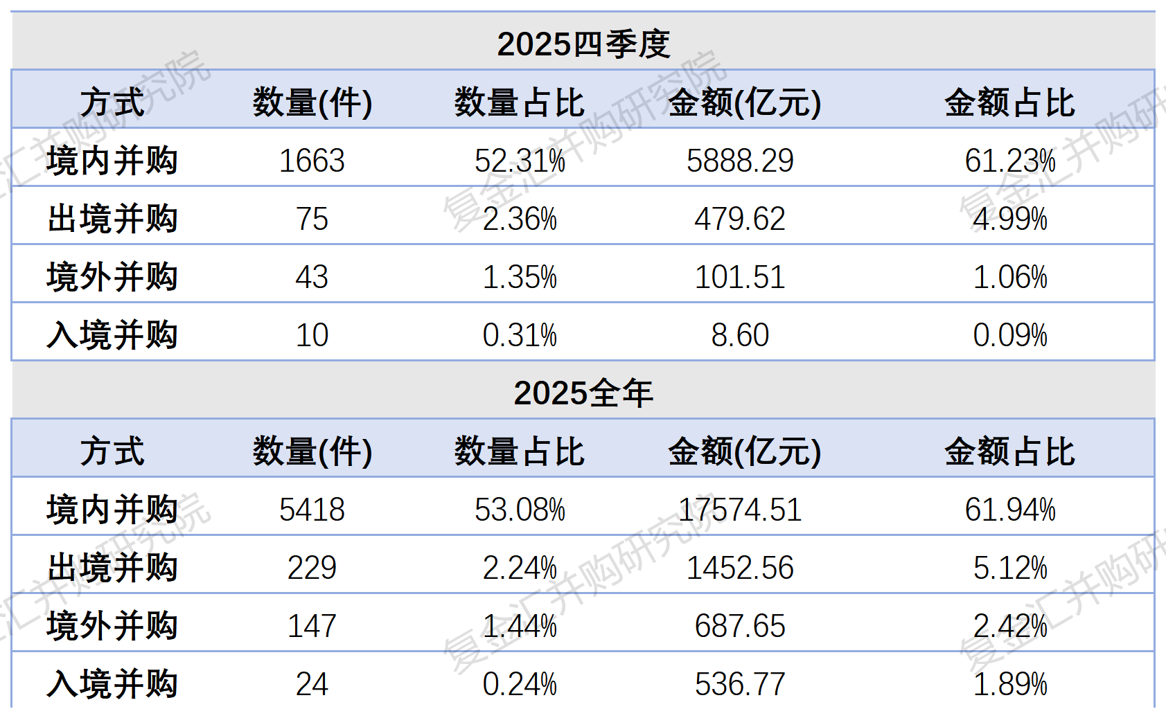 2025年Q4单季度及全年的跨境并购数据显示,境内并购主导格局显著,跨境并购各类型分化,反映国内外市场环境与企业战略差异。