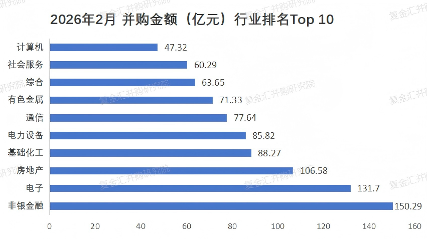 从2026 年2月的并购数据来看,行业间呈现出数量与金额不完全匹配的分化走势。