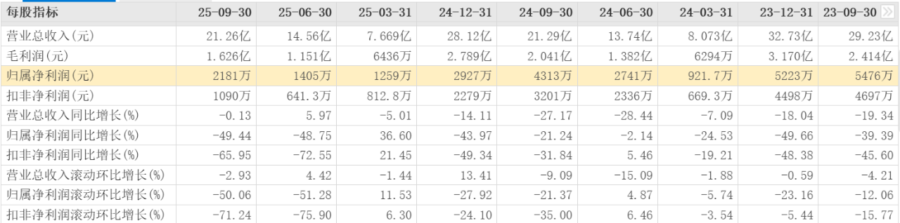 从财务数据看,和顺石油确实面临着增长压力。2025年三季度报显示,公司实现利润总额2181万元,同比下降49%;扣除非经常性损益的净利润为1090万元,同比下滑66%。