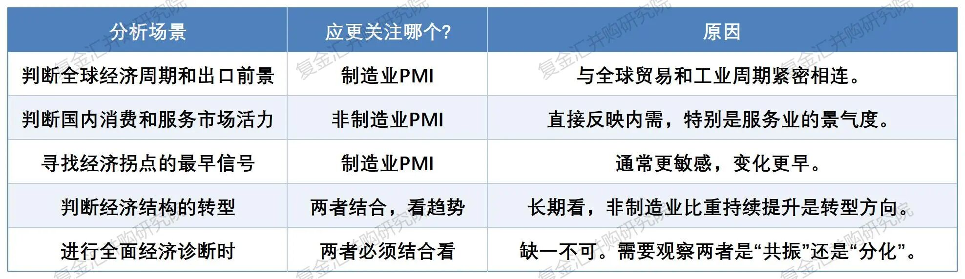 在专业分析中,制造业PMI通常更受关注,主要原因在于: