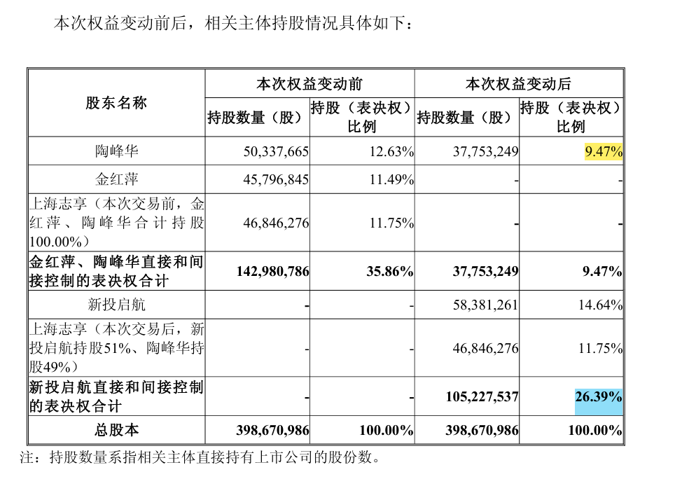 交易完成后,新投启航直接及间接控制法兰泰克26.39%的表决权,成为新任控股股东。
