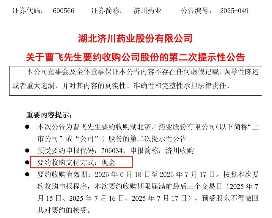 例如,2025年6月,济川药业发布公告,公司实际控制人家族内部进行股权结构调整,曹飞因受让其父曹龙祥所持济川控股部分股权,触发全面要约收购义务。