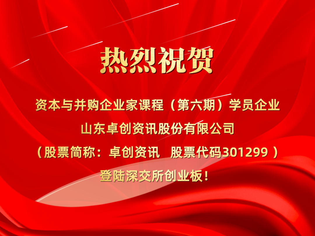 喜报 | 热烈祝贺并购6班学员企业:卓创资讯 深交所创业板上市