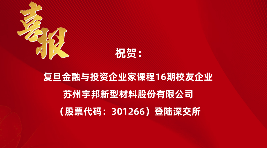 喜报 | 热烈祝贺金融16班校友企业:宇邦新材今日深交所上市!